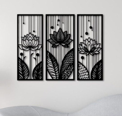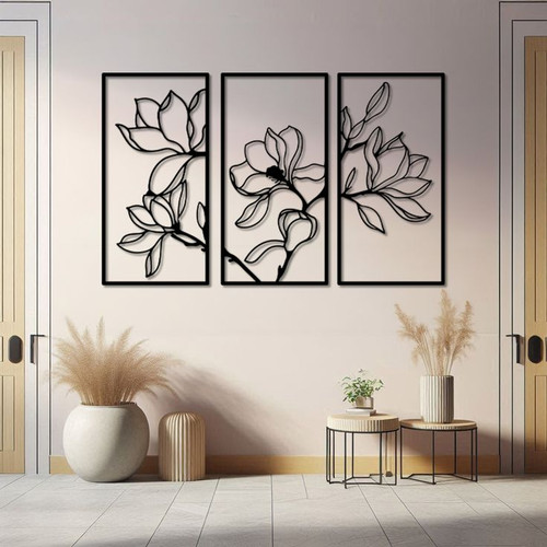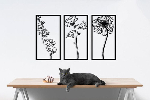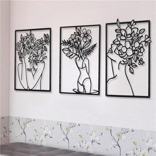 تابلوفلزی سه تکه چهره زن و گل T180