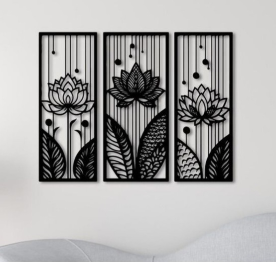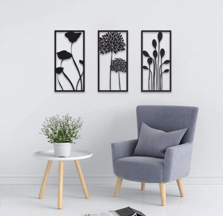 تابلوفلزی سه تکه چهره زن و گل T180