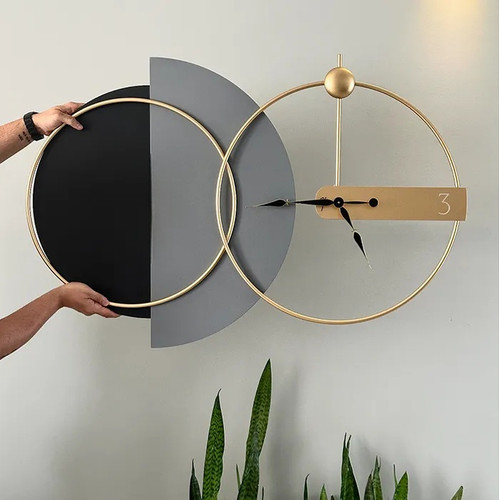 ساعت دیواری مدرن فلزی و چوبی لاکچری دو رنگ H583
