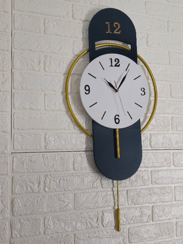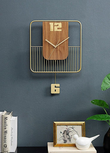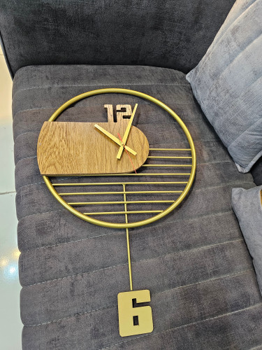 ساعت دیواری مدرن فلزی و چوبی لاکچری دو رنگ H598