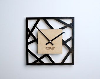 ساعت دیواری مدرن فلزی و چوبی لاکچری دو رنگ H236